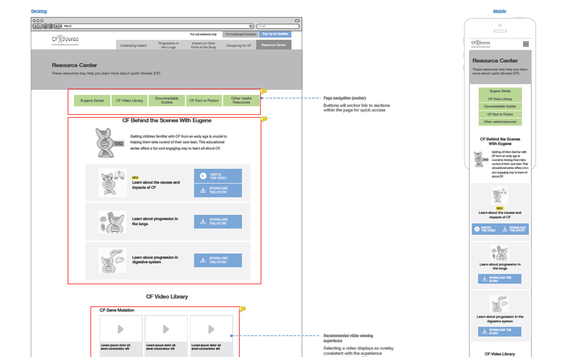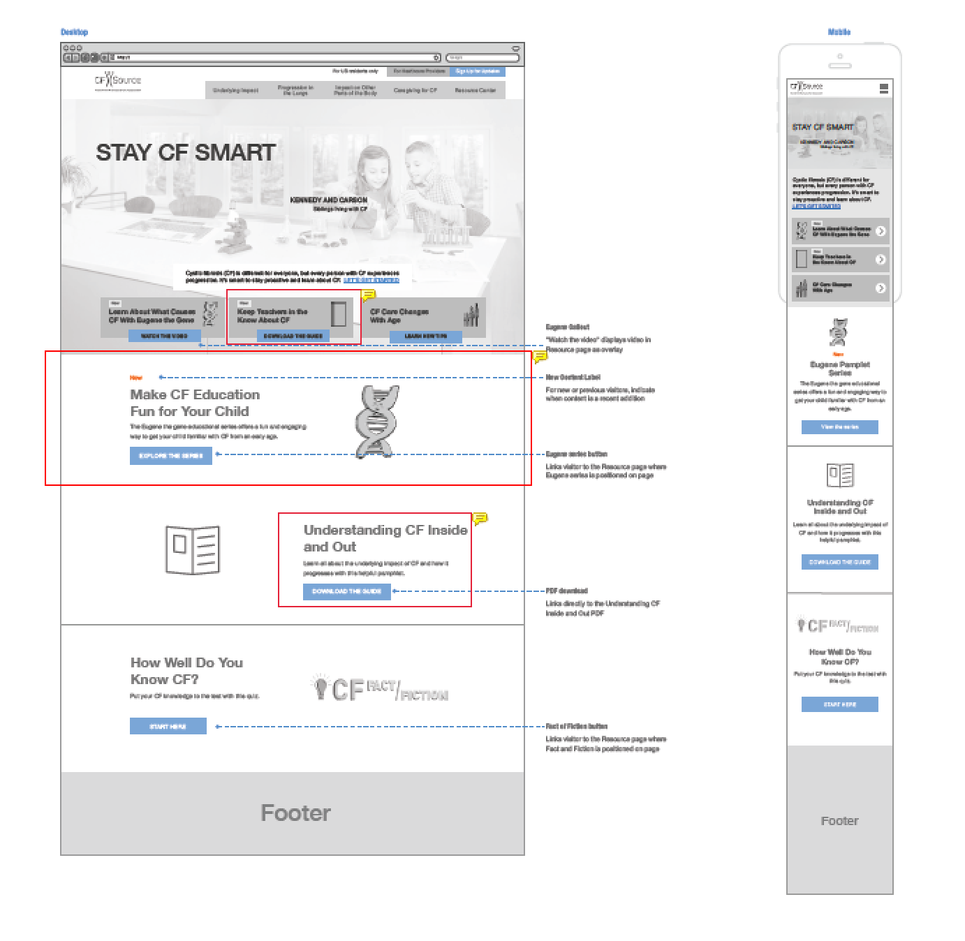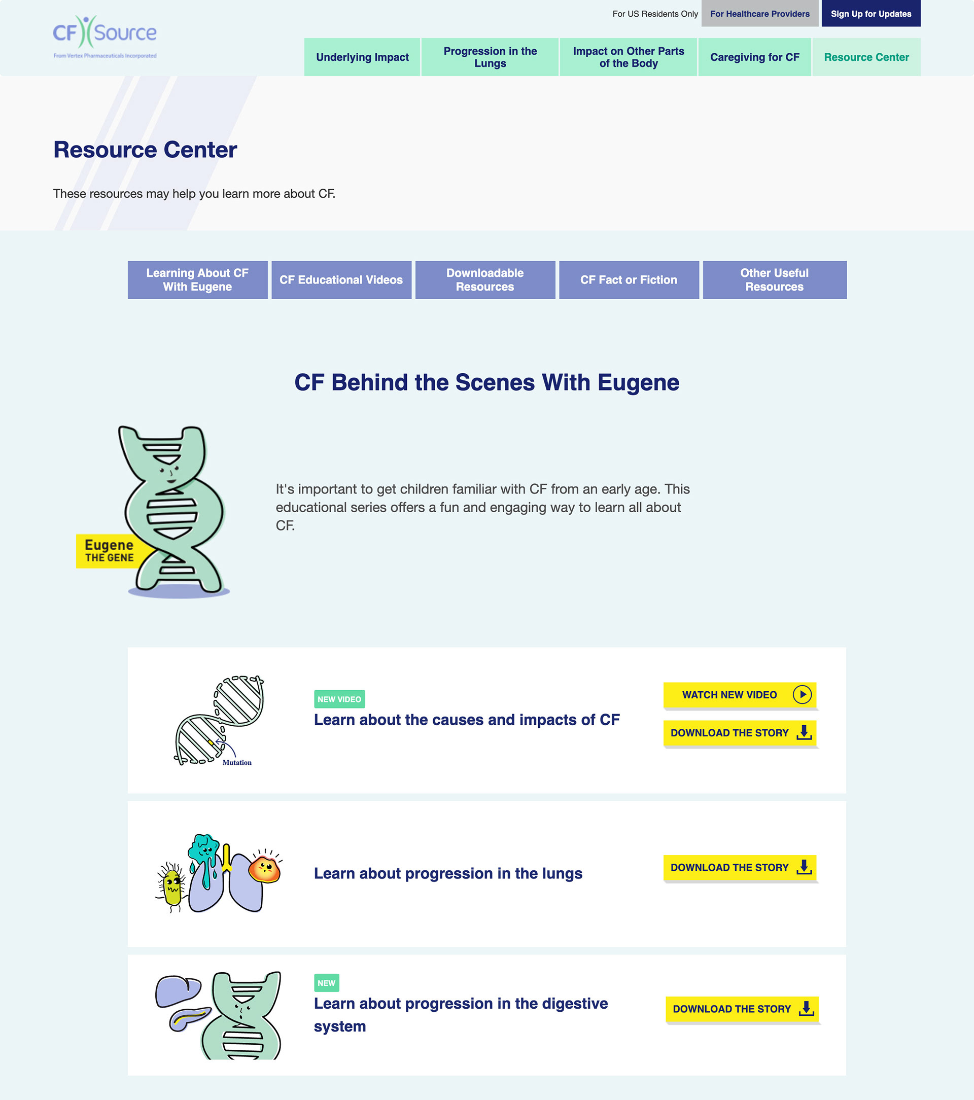 Turns out that the client had a small budget that needed to be spent, and they went with the most straight forward solution, so I did some research and suggested that we should create a tool that will help bridge the communications between patients (age 2-17) and caregivers. Still a downloadable PDF (to keep within the budget and time constraints) but it's a downloadable comic strip that the caregivers can read with their kids with CF.